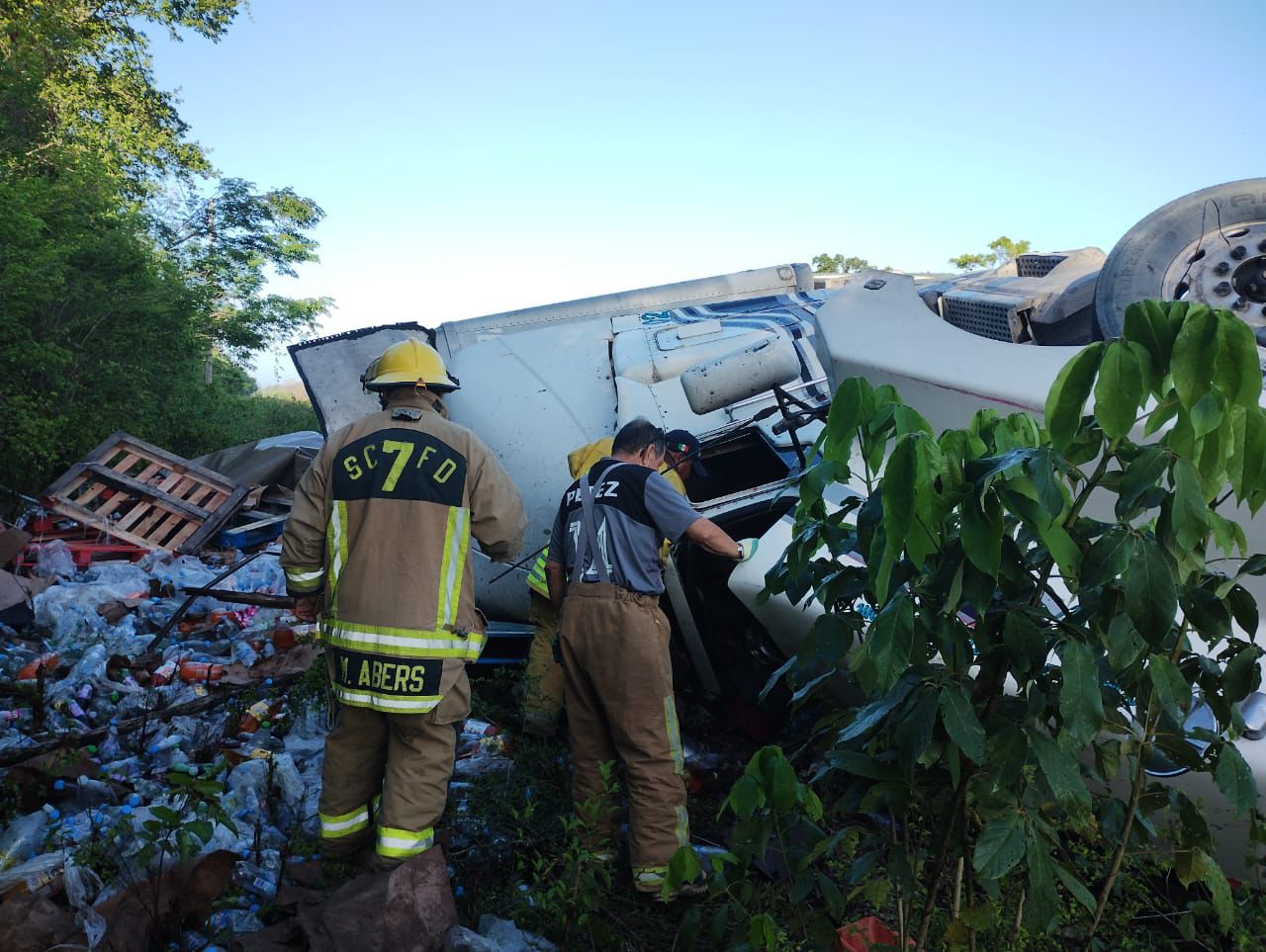 El incidente involucró a un tractocamión que transportaba refrescos embotellados de la reconocida marca Peñafiel. Tras el percance, el producto quedó esparcido entre la maleza en el área ubicada entre la ciudad de Felipe Carrillo Puerto y Tulum.