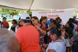 Cancún.- La gobernadora Mara Lezama Espinosa acompañó a las personas que acudieron hoy a la unidad deportiva “Toro” Valenzuela en el inicio del registro para acceder al programa Vivienda para el Bienestar del CONAVI, del 25 de septiembre al 2 de octubre próximo.
