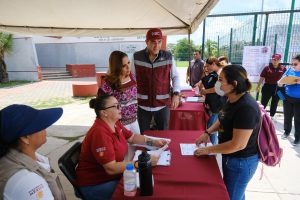 Acompañada del titular de la SEDETUS, José Alberto Alonso Ovando, la Gobernadora escuchó a las personas, entre ellas mujeres y hombres de la tercera edad, jefas y jefes de familia, así como jóvenes, y resolvió algunas dudas. Precisó que los registros son totalmente gratuitos, sin intermediarios.