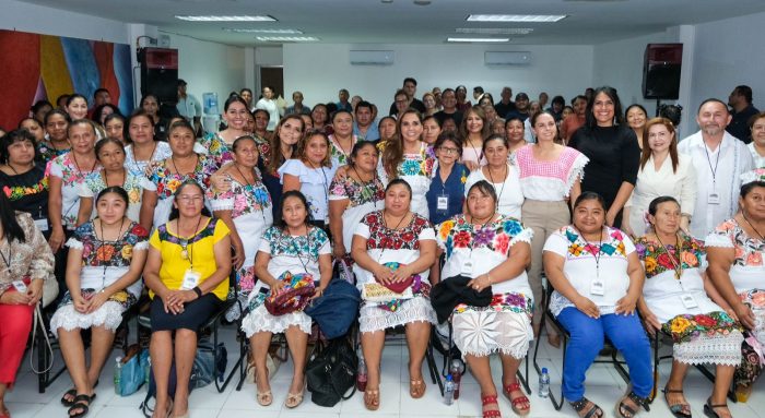 Al inicio de este ciclo de capacitaciones fue invitada la gobernadora Mara Lezama Espinosa, quien estuvo acompañada de la artesana Addy Flor Matos Chuc; de David Calderón Uc, artesano de Cozumel; de la secretaria de Desarrollo Económico Karla María Almanza López; de la presidenta honoraria del Sistema DIF Quintana Roo, Verónica Lezama Espinosa, y la presidenta municipal Ana Paty Peralta de la Peña.