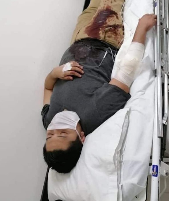 Minutos después pasaba una patrulla de la Secretaría de Seguridad Pública que ante el llamado de transeúntes se acercó; al ver lo sucedido tomo la iniciativa de trasladar al joven lesionado abordó de su patrulla a una clínica para que recibiera atención médica.