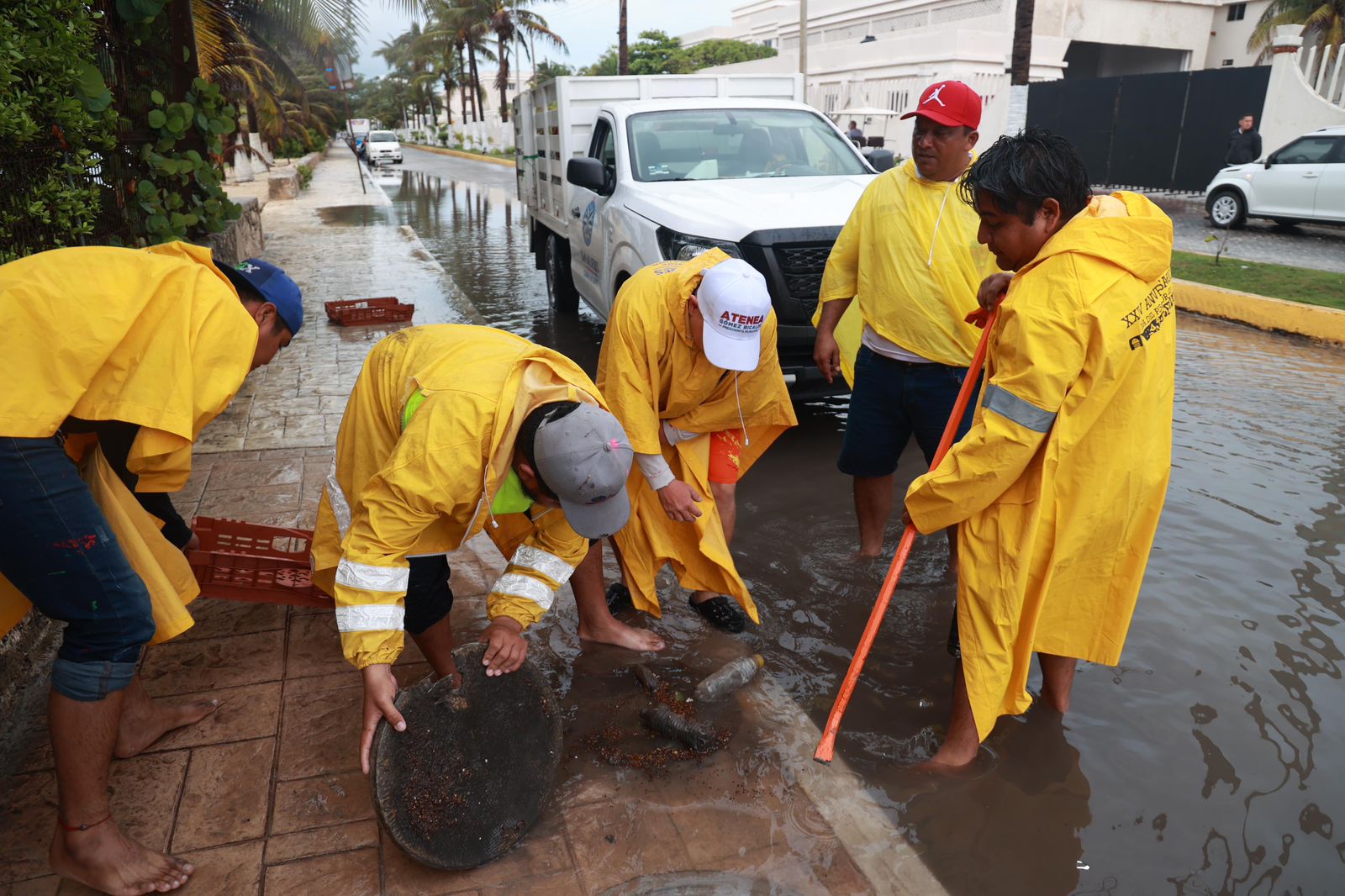 En el Operativo Tormenta participan las áreas operativas de Protección Civil y Bomberos, Seguridad Ciudadana y Tránsito y Servicios Públicos, entre otras, con la finalidad de atender de manera oportuna los encharcamientos e inundaciones generadas por las recientes lluvias, ya que para el Gobierno Municipal cuidar la seguridad física y patrimonial de las familias isleñas es una prioridad.