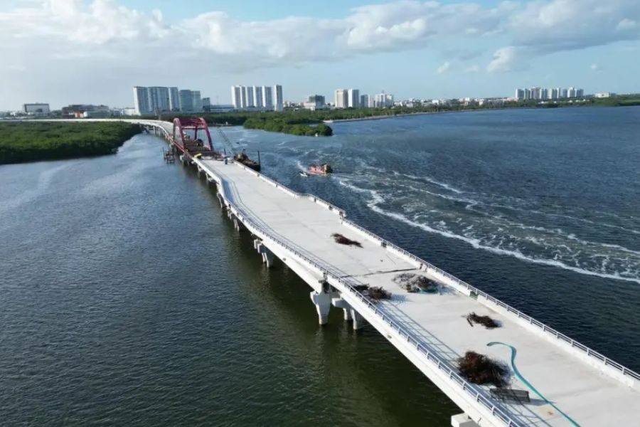 Cancún.— Se mantiene el avance en la construcción del paso a desnivel en el entronque del bulevar Kukulcán con el Puente Nichupté, a cargo de la Secretaría de Infraestructura, Comunicaciones y Transportes (SICT), con la meta de concluirlo en octubre de este año.
