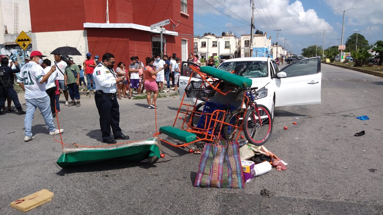 El accidente que ocurrió sobre la avenida Orquídeas, fue ocasionado por un hombre, identificado como José “N” quien a bordo de un Nissan Sentra color blanco, transitaba a exceso de velocidad y en estado etílico, cuando embistió a un bicitaxi, provocando que tres personas terminaras mal heridas, una de ellas de gravedad.