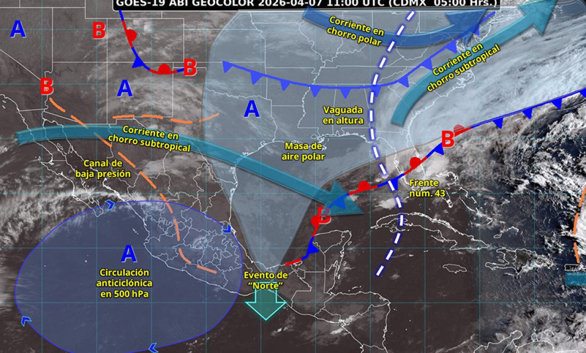 Su interacción con un canal de baja presión y la humedad del mar Caribe generará cielo parcialmente nublado por la mañana, con incremento de nubosidad conforme avance el día.