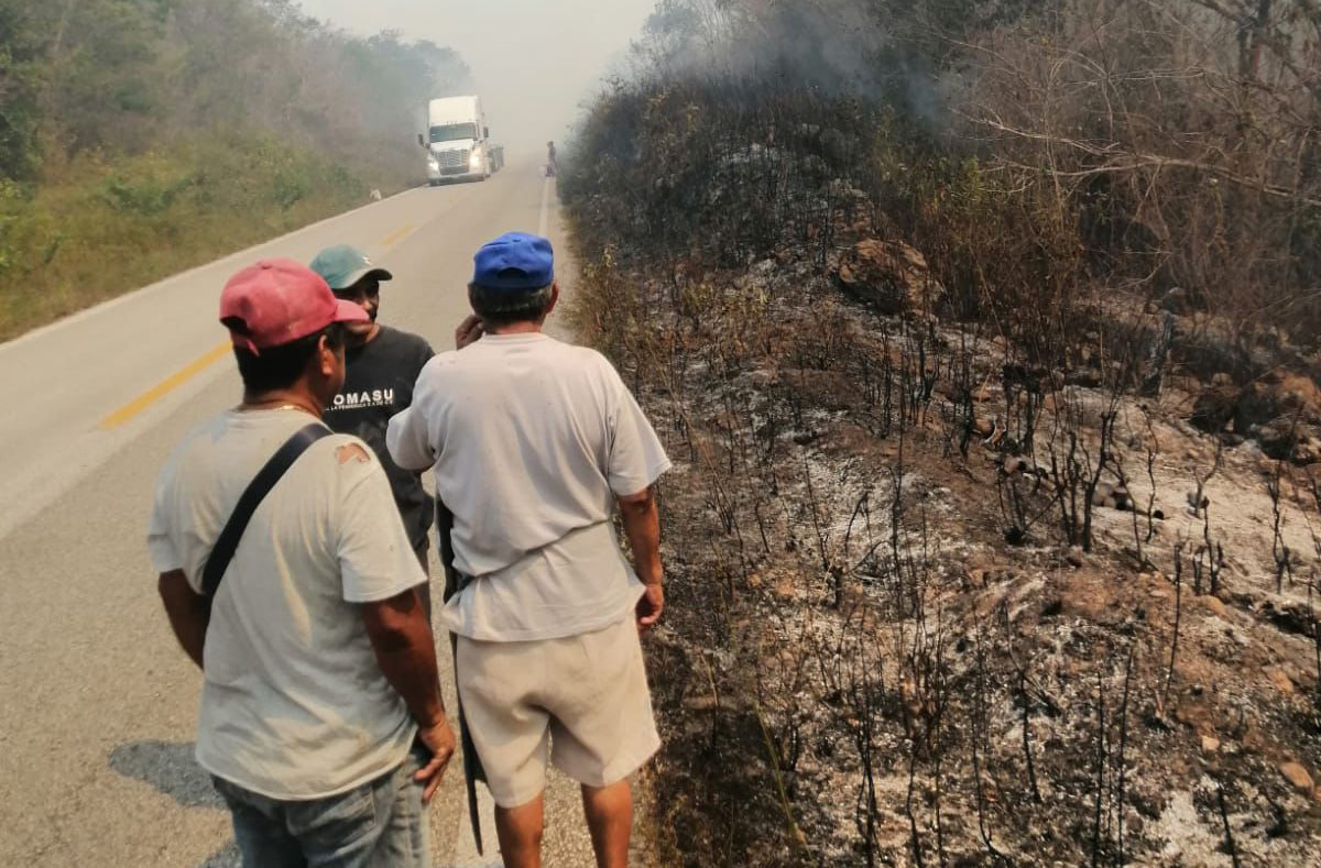 De acuerdo a los campesinos, son dos incendios ubicados en el kilometro 76 y kilómetro 85 salida a Tihosuco en el tramo carretero Felipe Carrillo Puerto – Valladolid.