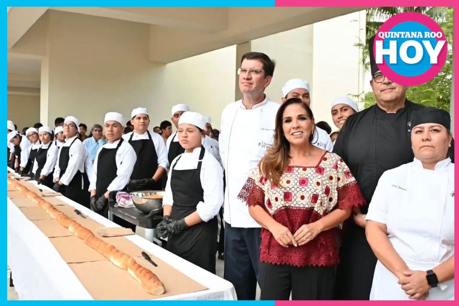 Cancún.- En el marco de la celebración del 25 aniversario de la creación de la Universidad del Caribe (UNICARIBE) Cancún, las y los alumnos de la carrera de Gastronomía prepararon la torta de cochinita más larga, de 300 metros, con el que esperan romper el récord Guinness.