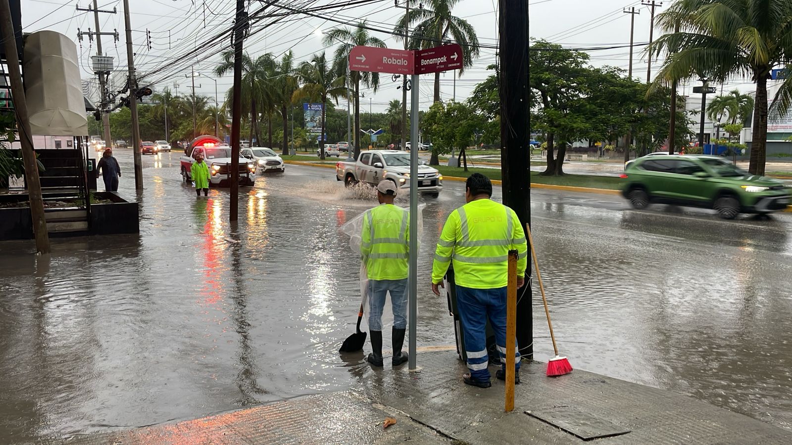 CANCÚN.- Ante las intensas lluvias, SIRESOL intensificó operativos de limpieza en calles, alcantarillas y pozos de absorción en Cancún.