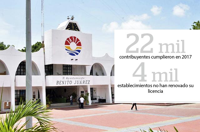 BENITO JUÁRES,Quintana Roo.-Enfrenta el ayuntamiento de Benito Juárez un rezago de 4 mil establecimientos que no han renovado sus licencias de funcionamientos del 2017 y tienen en puerta la correspondiente al 2018, informó el director de Fiscalización, Eduardo Mariscal de la Selva.
