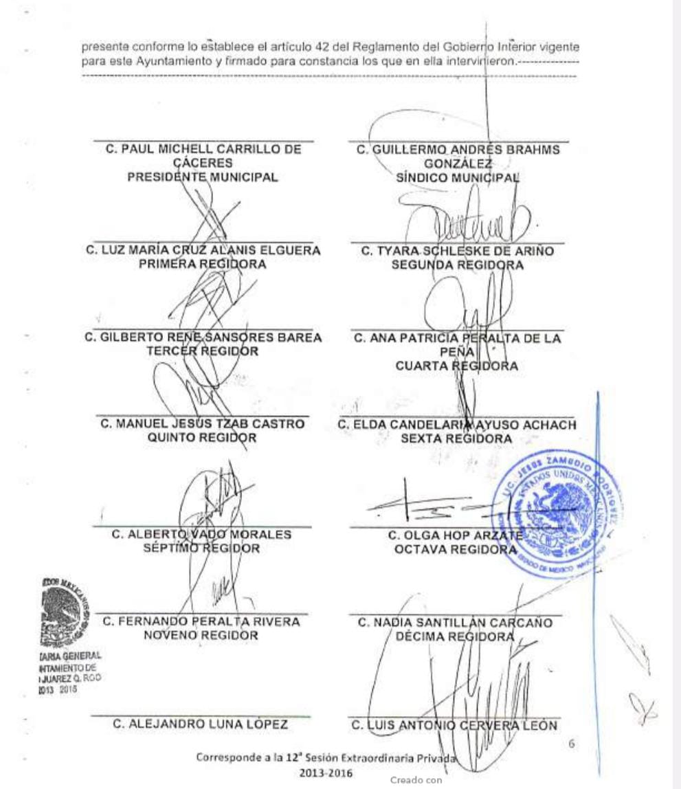 “Los últimos cuatro presidentes municipales (Paul Michel Carrillo de Cáceres [2013-2016], Remberto Estrada Barba [2016-2018], María Elena Hermelinda Lezama Espinosa [2018-2022] y Ana Patricia Peralta de la Peña [2022-2024] como sustituta) cayeron en omisión.