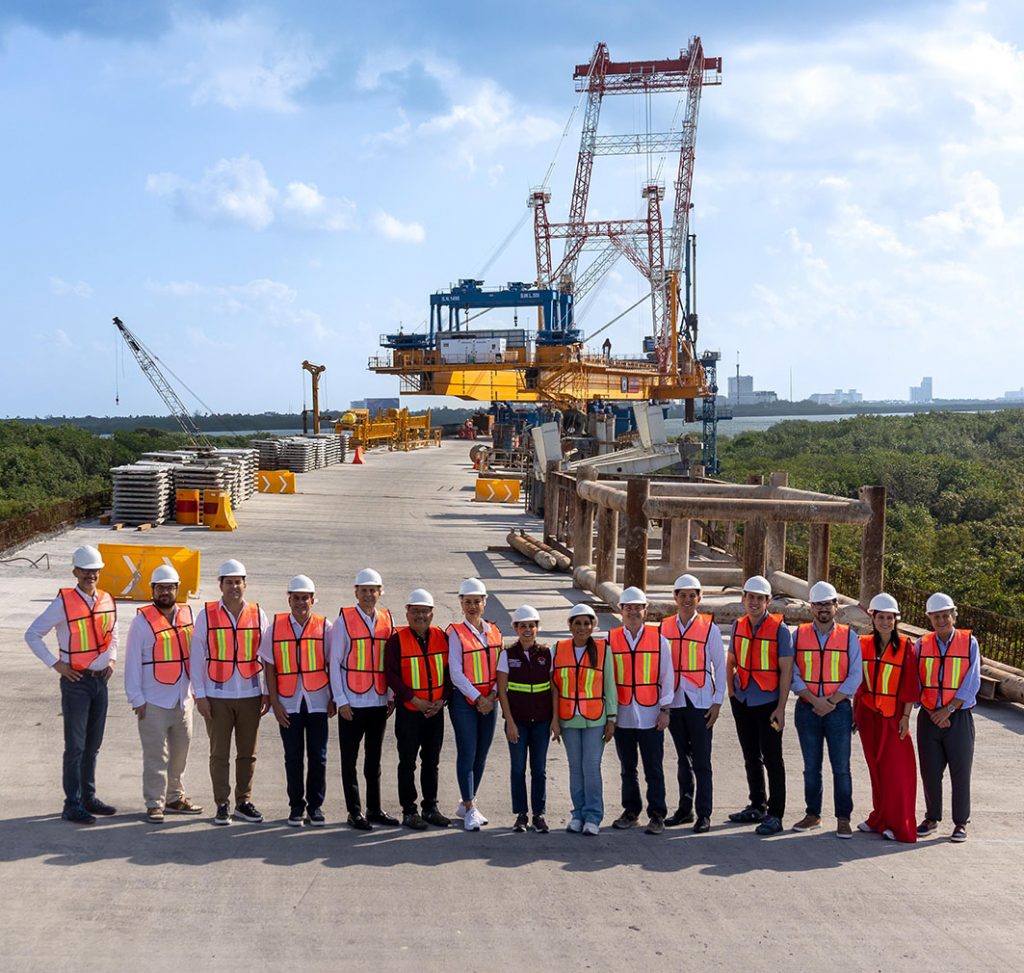 El subdirector de Obras del Centro Secretaría de Infraestructura, Comunicaciones y Transportes (SICT) en Quintana Roo, Miguel Ángel Ramírez Martínez, junto con el residente de la obra, Jorge Santiago Martínez, detallaron que tiene un 74.3 por ciento de avance y se hizo con el reto de no dañar el manglar, por lo que se usó un equipo sofisticado de ingeniería italiana llamado “TopDown”, por primera vez en México y segunda en Latinoamérica para edificar desde arriba las pilas de cimentación, las columnas así como el montaje de cabezales y trabes.