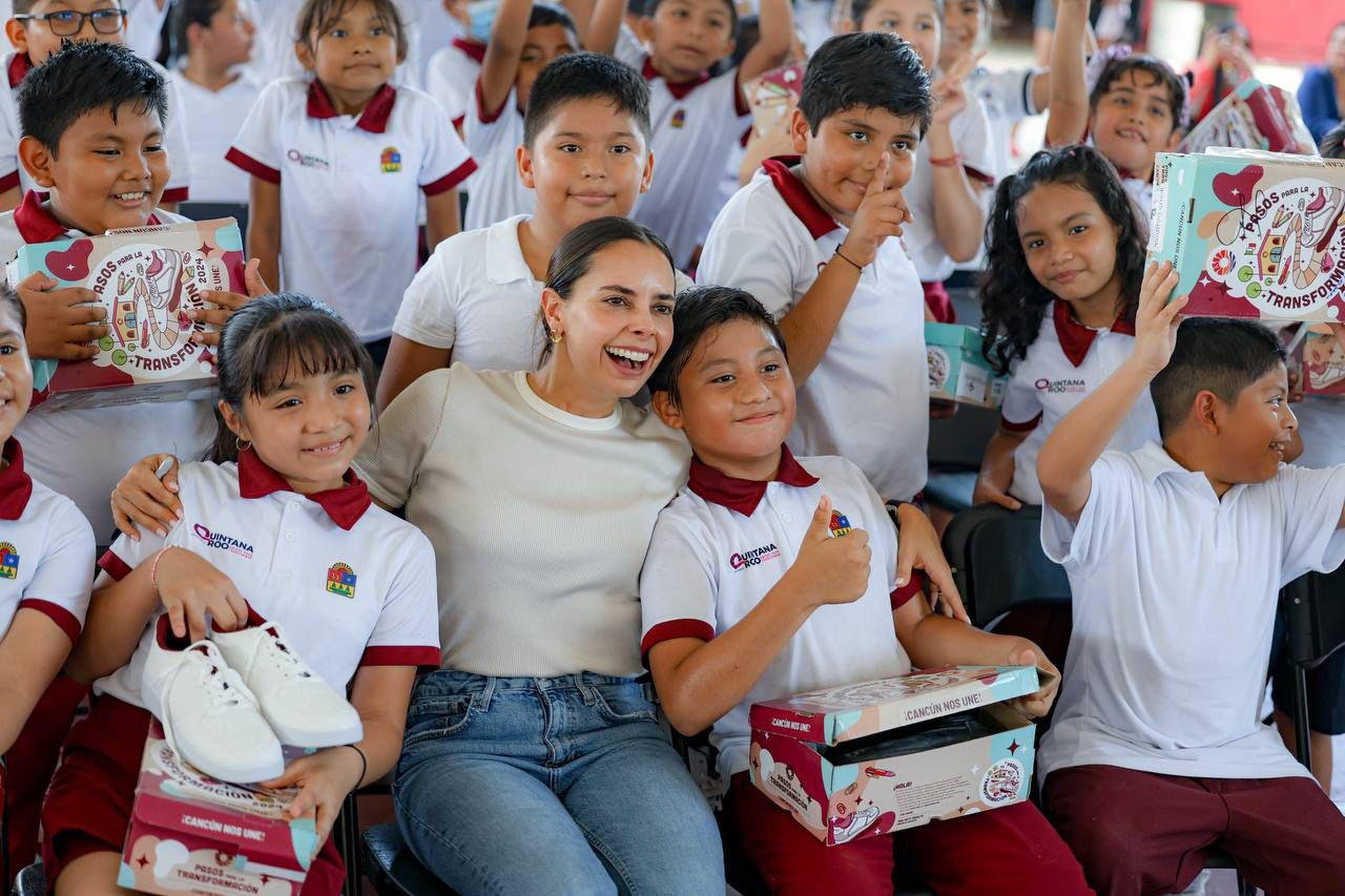 Cancún.- La presidenta municipal, Ana Paty Peralta, anunció que, mediante el programa “Pasos para la Transformación”, se han distribuido hasta la fecha 72 mil 652 pares de tenis escolares de manera gratuita a estudiantes de niveles especial, preescolar, primaria y secundaria en 251 escuelas públicas de Cancún. Esta iniciativa refuerza su compromiso con la educación de los jóvenes en la localidad.