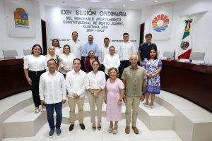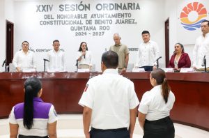 Cancún,- En el marco de la Vigésima Cuarta Sesión Ordinaria, encabezada por la Presidenta Municipal, Ana Paty Peralta, se aprobaron por unanimidad diversos nombramientos, entre ellos, el nuevo titular de la Tesorería Municipal, así como de diversos cargos en la Secretaría de Seguridad Ciudadana y Tránsito, para dar seguimiento al objetivo central de fortalecer la administración pública de Benito Juárez en los ámbitos de construcción de la paz y finanzas sanas.
