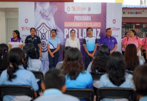 Cancún.- Como parte de la Campaña de 16 días de Activismo contra la Violencia de Género, la Presidenta Municipal, Ana Paty Peralta, presentó el programa “Guardianes Escolares por la Paz”, para que los alumnos de secundaria entre 12 y 16 años ayuden en la prevención, detección y atención oportuna de situaciones relacionadas con el acoso escolar y distintas manifestaciones de violencia que pudieran presentarse en sus planteles.