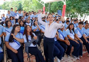 En la interacción directa y amena con los alumnos, la Presidenta Municipal fue motivando a que propusieran acciones positivas en el entorno escolar como compartir el desayuno, apoyarse entre compañeros, entre otras, para que en esta etapa de la adolescencia, tomen las mejores decisiones que serán importantes para el transcurso de su vida.