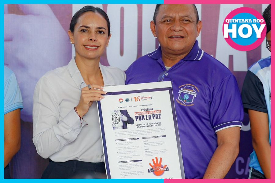 Cancún.- Como parte de la Campaña de 16 días de Activismo contra la Violencia de Género, la Presidenta Municipal, Ana Paty Peralta, presentó el programa “Guardianes Escolares por la Paz”, para que los alumnos de secundaria entre 12 y 16 años ayuden en la prevención, detección y atención oportuna de situaciones relacionadas con el acoso escolar y distintas manifestaciones de violencia que pudieran presentarse en sus planteles.