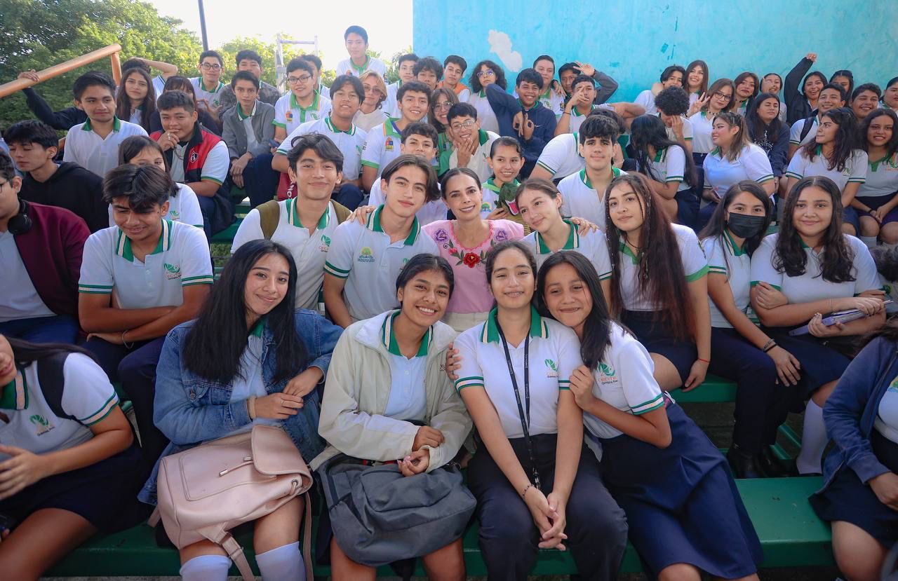 CANCÚN.- “Jóvenes cancunenses, vamos a trabajar juntos por la ciudad, vamos a hacer la diferencia y demostrar que Cancún es grande y que somos ejemplo, por eso les traemos un programa donde les damos pláticas para que pregunten y participen en diferentes temas”, exhortó la Presidenta Municipal, Ana Paty Peralta, a estudiantes del Centro de Estudios Científicos y Tecnológicos (CECYTE) Cancún Plantel II, como parte de una jornada del programa “Jóvenes Construyéndose”.