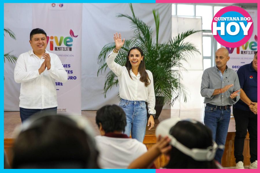 Cancún.- La Presidenta Municipal, Ana Paty Peralta, encabezó el programa “Yo no soy cómplice” etapa de realidad virtual “Vive Libre” que realiza el Instituto Municipal Contra las Adicciones (IMCA), dirigido a estudiantes del Centro de Bachillerato Tecnológico Industrial y de Servicios (CBTIS 111), con el objetivo de prevenir que se refugien en adicciones, y vivan su entorno positivo y saludable.