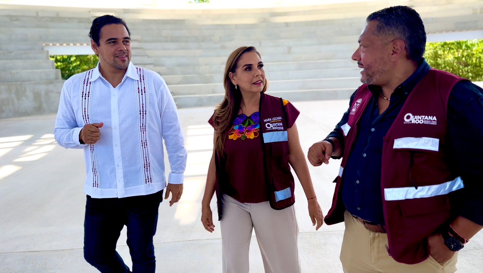 La gobernadora de Quintana Roo, acompañado del titular del Instituto de Infraestructura Física Educativa (IFEQROO) José Rafael Lara Díaz, constató los avances de la obra.