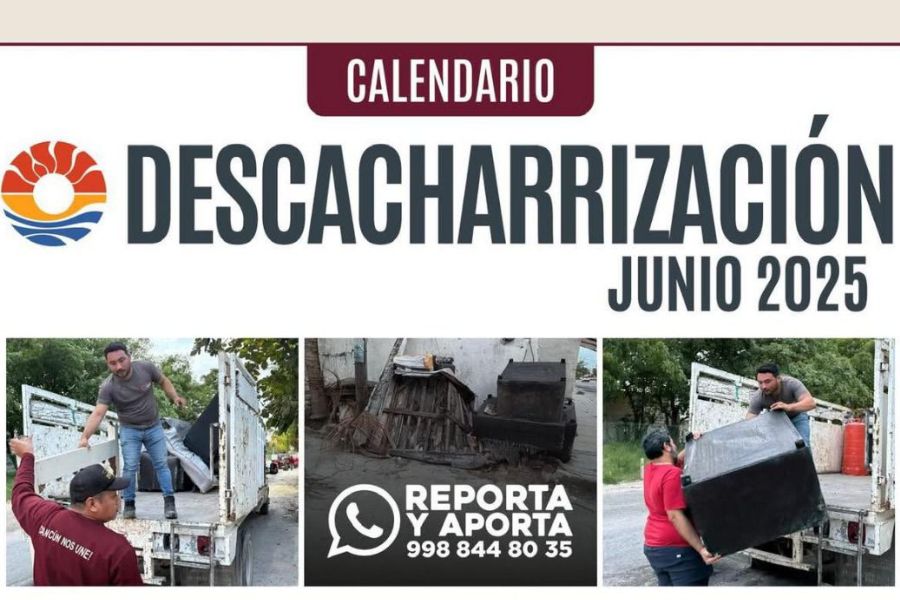Cancún.- El Ayuntamiento de Benito Juárez, a través de la Dirección General de Servicios Públicos, presentó el calendario de descacharrización para junio, por lo que se invita a los cancunenses sacar sus electrodomésticos, muebles, contenedores y demás artículos que estén en desuso, para contribuir a la construcción de una ciudad más limpia y saludable.