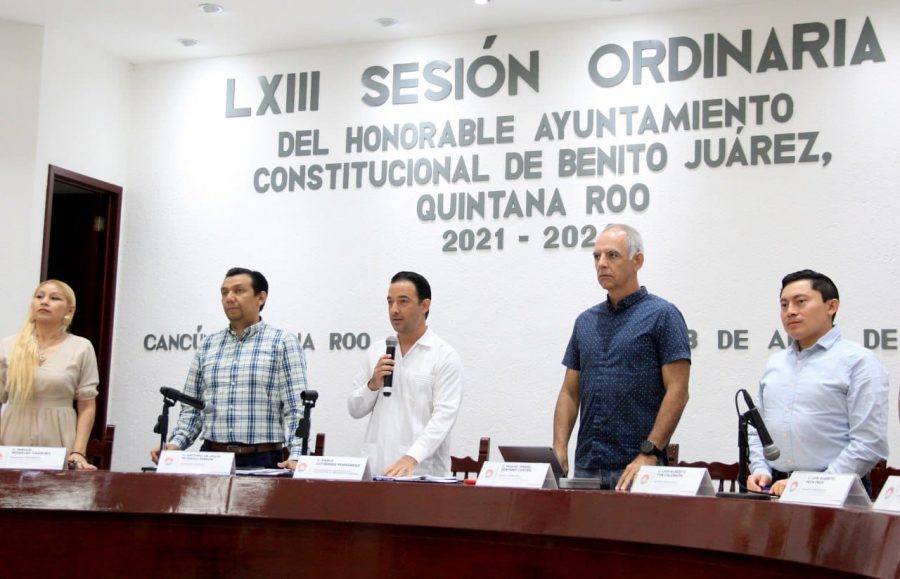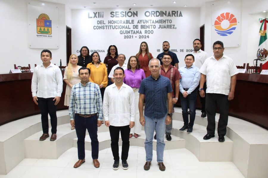 CANCÚN.- En la Sexagésima Tercera Sesión Ordinaria de Cabildo del Municipio de Benito Juárez, el cuerpo de cabildo aprobó por unanimidad, la designación de la Comisión de Cortesía de la Décima Sesión Solemne del Ayuntamiento, en la que se realizará la conmemoración del 54 Aniversario de Cancún.