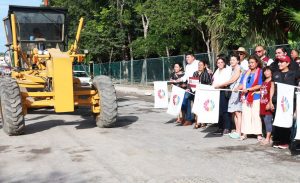 Cancún,.- Al ser este un gobierno que pone al centro el bienestar y la justicia social de los cancunenses, la Presidenta Municipal, Ana Paty Peralta, realizó el banderazo de inicio de la obra de reconstrucción de pavimento, balizamiento, construcción y perforación de pozos de absorción en la calle Paseo el Peral de la Supermanzana 248.