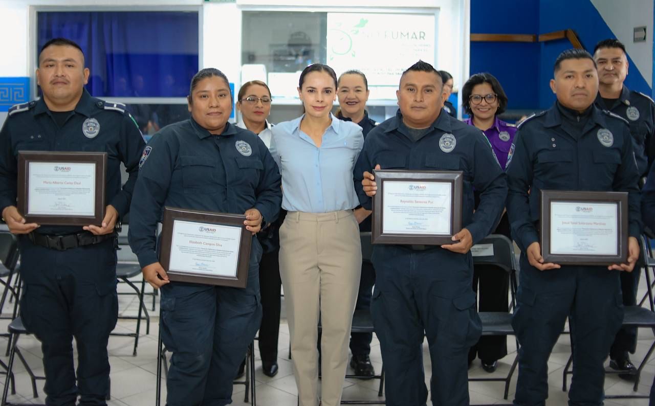 “Por nuestra parte y con todo el apoyo de la visión de la Presidenta Municipal, Ana Paty Peralta hemos capacitado en esta ocasión a nuestro personal en el marco de las acciones del programa de “Prevención y Reducción de la Violencia” de la Agencia de los Estados Unidos para el Desarrollo Internacional (USAID/PREVI), y validado por el Secretariado Ejecutivo del Sistema Nacional de Seguridad Pública, esto como como parte de la formación continua de los elementos que integran las Instituciones pertenecientes al Sistema Nacional de Seguridad Pública.