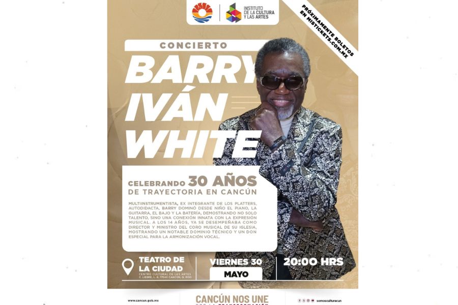 CANCÚN.- La elegancia del soul llega a Cancún de la mano de Barry Iván White, reconocido artista internacional con más de tres décadas de trayectoria musical en la ciudad.