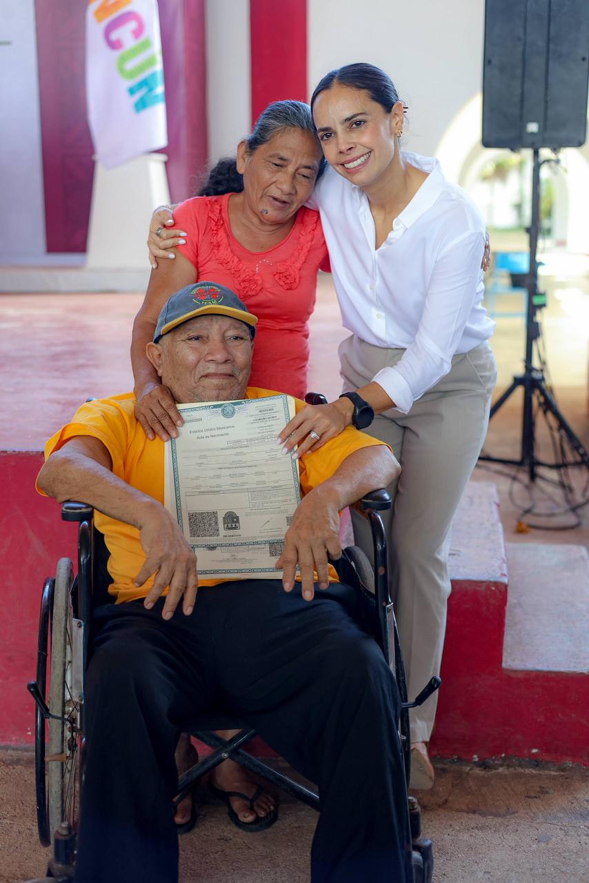 Cancún.- La presidenta municipal Ana Paty Peralta, entregó 125 actas de nacimiento extemporáneas como parte del programa “Tu identidad es tu derecho”, para garantizar a los ciudadanos el acceso a un nombre y una nacionalidad, fundamentales para su desarrollo integral.