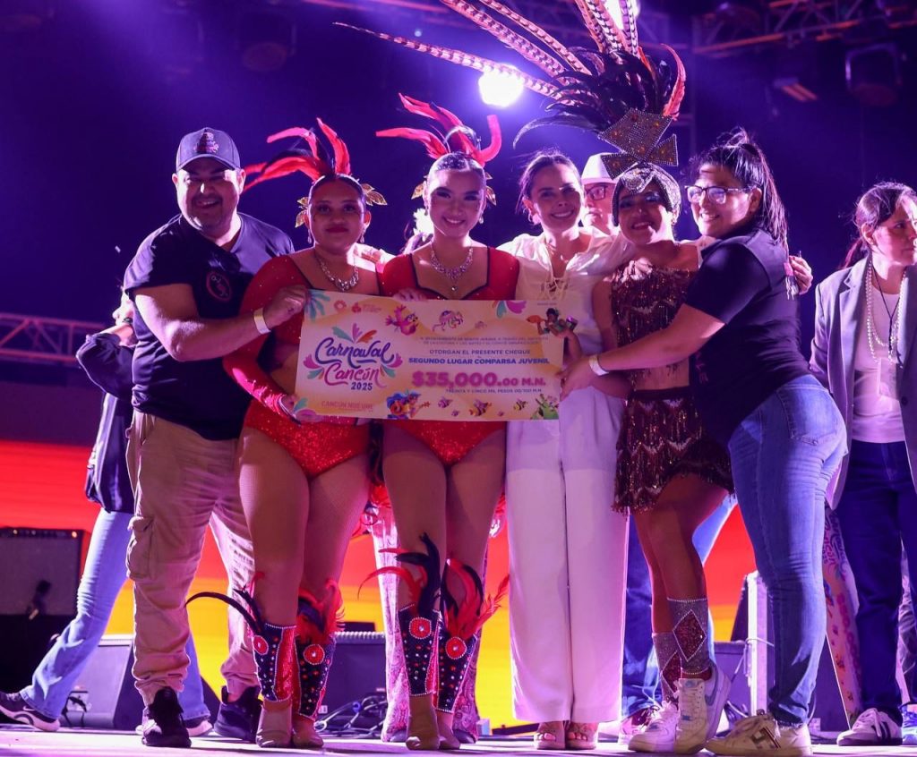 CANCÚN.- Tras seis días de fiesta, en los que la ciudad brilló y se envolvió con el “Carnaval Cancún 2025” que registró a más de 88 mil asistentes, la Presidenta Municipal, Ana Paty Peralta, encabezó las actividades que marcaron el cierre de las celebraciones carnestolendas, desde el recorrido por el pabellón gastronómico y artesanal, la premiación de comparsas, hasta la espectacular presentación de “Intocable”, cerrando la fiesta con saldo blanco.