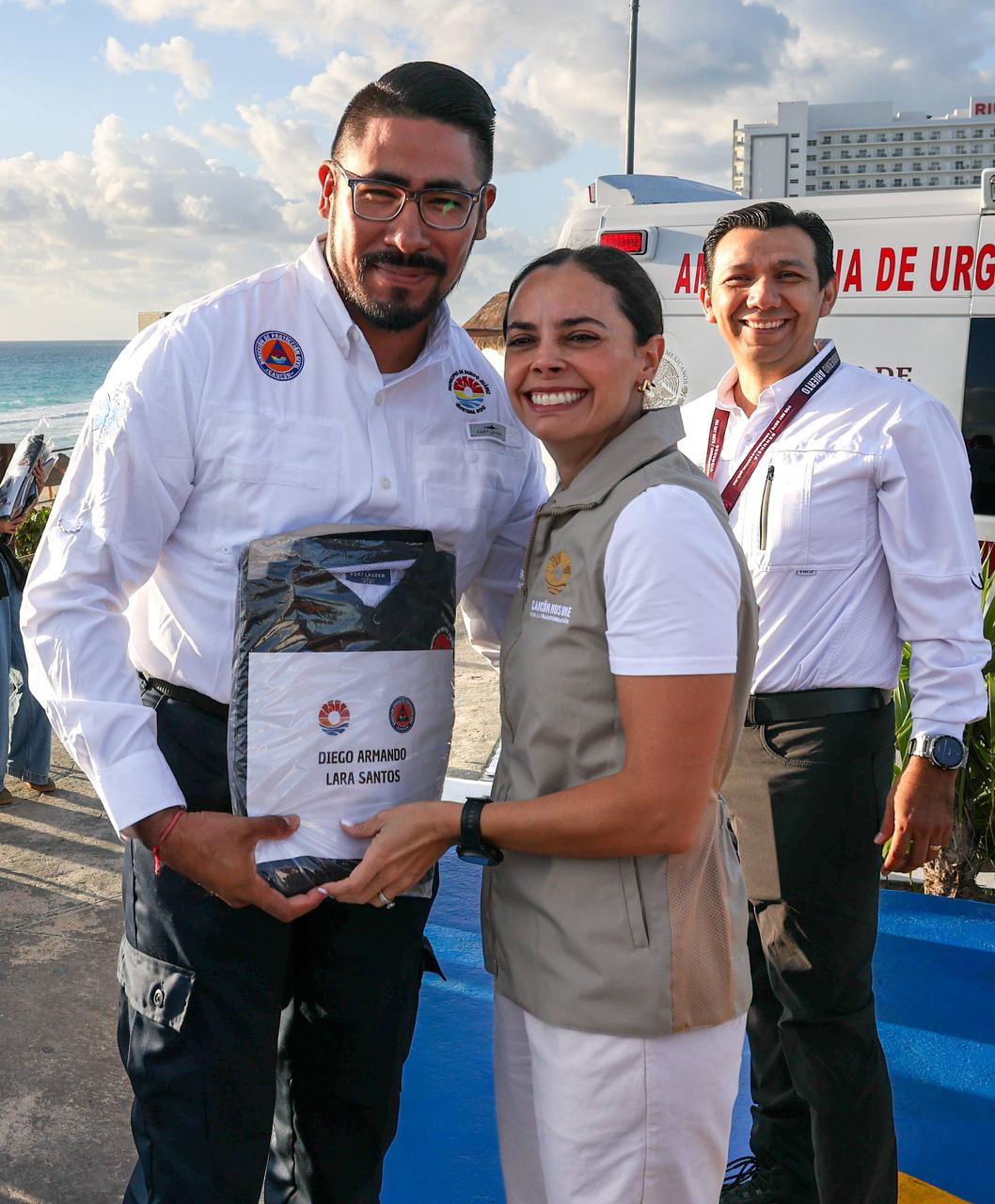 Cancún.- Para dar inicio al operativo de seguridad de las unidades de emergencia de la dirección de Protección Civil en este periodo vacacional invernal, la Presidenta Municipal, Ana Paty Peralta, entregó juegos de uniformes a guardavidas y personal que estarán disponibles para atender a los turistas y cancunenses durante este periodo de descanso.