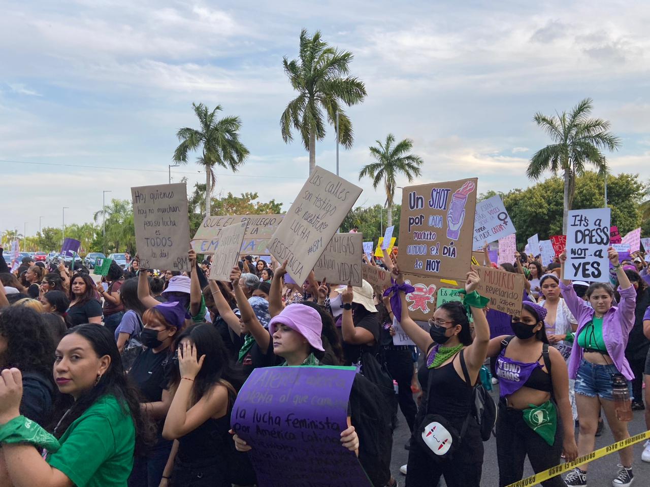 CANCÚN.- Colectivos feministas convocaron esta mañana a una megamarcha pacífica en el centro de Cancún, para reclamar a las autoridades la falta resultados ante las denuncias de mujeres víctimas de violencia, en el marco del 8 de marzo, Día Internacional de la Mujer.