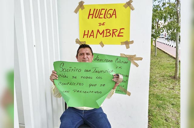 CANCÚN,Quintana Roo.-En apoyo al maestro Adolfo Pulido, quien mantiene una huelga de hambre en la Escuela Secundaria Técnica 38, madres de familia de la Escuela Técnica 25 acudieron la mañana de ayer a la secundaria para denunciar los abusos y mala práctica por parte de la directora Cristina Rodríguez Alexander, cuando fungió como directora de la Técnica 25, en tanto la directora negó los señalamientos.