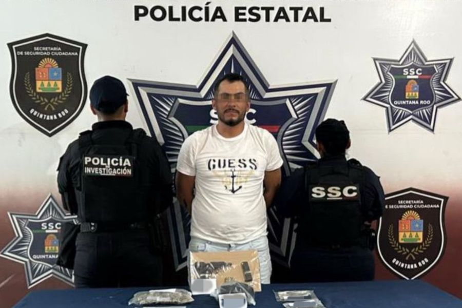 Cancún.- Una intervención de rutina derivó en el aseguramiento de una persona que transportaba diversas dosis de aparente marihuana y un arma de fuego en las inmediaciones de una transitada zona comercial de Cancún, lo que activó protocolos de seguridad por posible riesgo a terceros.