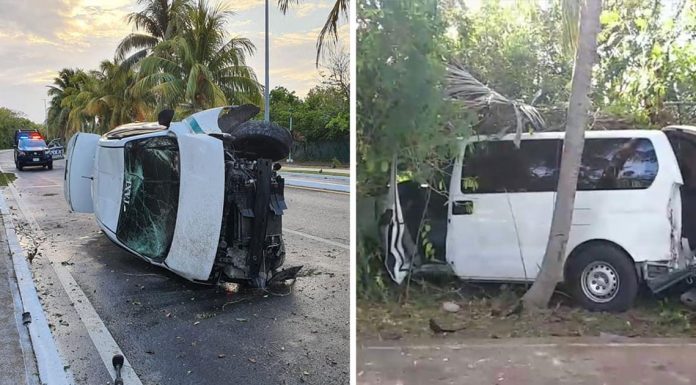 Minutos después, a las 8:50 de la mañana, ocurrió otro accidente en la zona hotelera, exactamente en el kilómetro 24 de la calle Kukulcán, cuando el conductor de un auto turístico perdió el control y se precipitó al interior. La montaña.