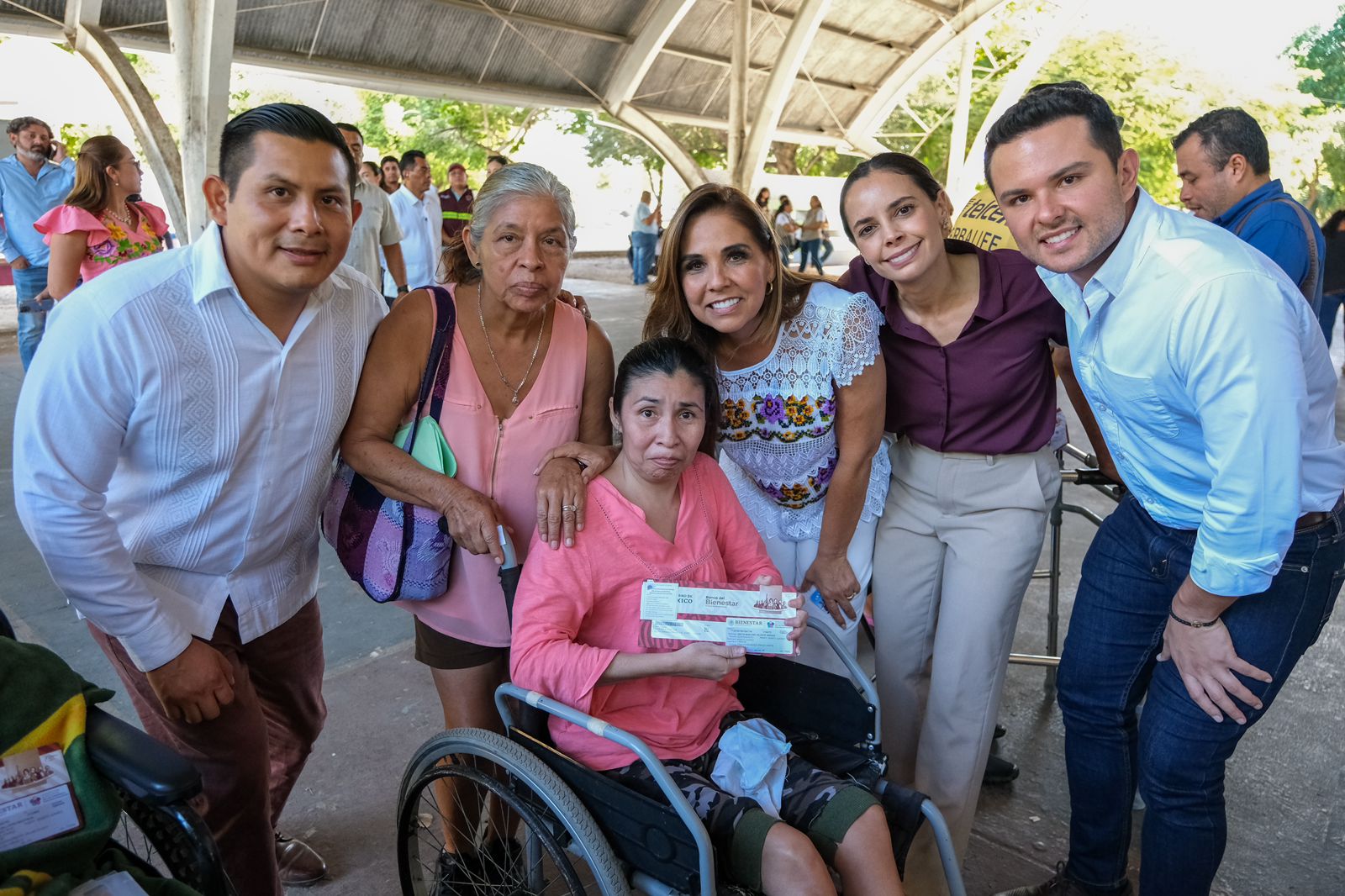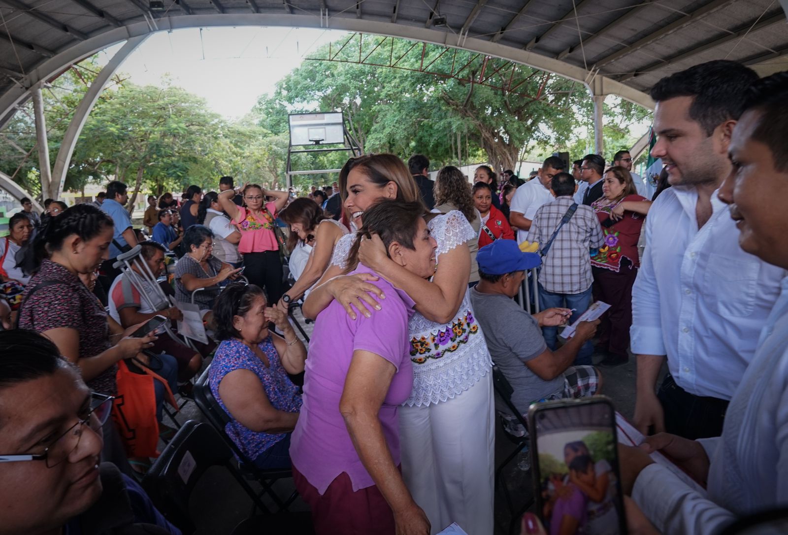 En territorio, lejos del escritorio, alejada totalmente de los protocolos, la gobernadora Mara Lezama entregó una a una y en mano propia las tarjetas a Rita Maldonado González y Cristina López Jácome, quienes acompañaron a la titular del Ejecutivo en el presídium.