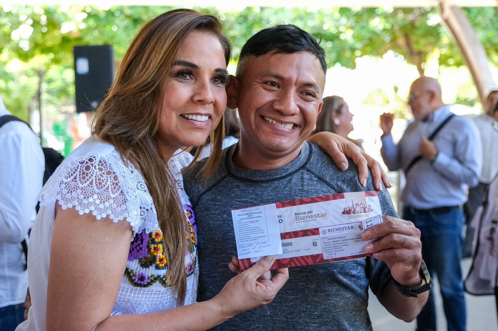 El evento se realizó en el domo deportivo de la Región 95 en donde en específico se entregaron tarjetas a 111 mujeres y 69 hombres de un total de mil 965 beneficiarios, en el que Mara Lezama destacó que este gobierno humanista y progresista trabaja combatiendo la corrupción para que el dinero alcance para más.