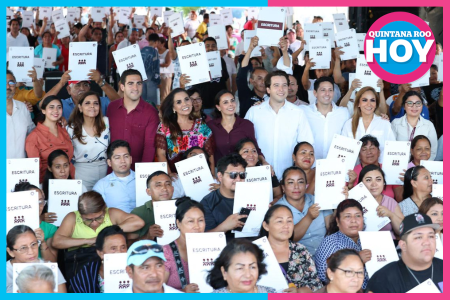 Cancún.- Como parte del compromiso de impulsar la justicia social y fortalecer el patrimonio de las familias cancunenses, la Presidenta Municipal, Ana Paty Peralta, junto con la gobernadora, Mara Lezama, entregó 503 escrituras a habitantes de 18 colonias y 3 subdivisiones, a través del Programa de Regularización para el Bienestar Patrimonial.
