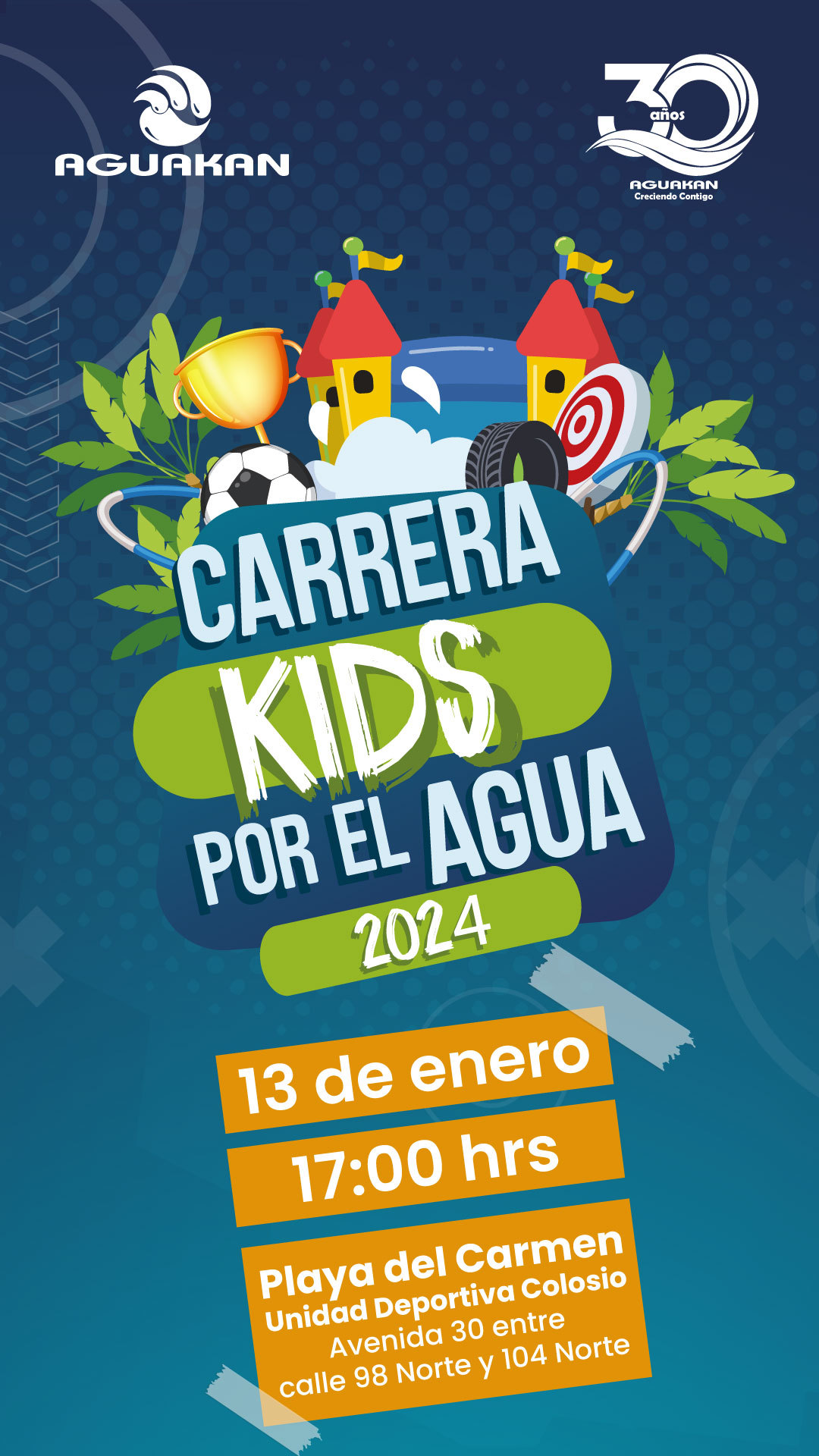este sábado 13 de enero en el Domo Deportivo Colosio. Las inscripciones ya están abiertas y se pueden realizar en el sitio web www.aguakan.com/carrera-kids-por-el-agua-2024/.