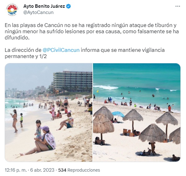 Lo anterior fue comentado por el funcionario, luego que circulara una nota sobre un menor de edad estadounidenses que supuestamente había sido mordido por un tiburón en playas de Cancún.