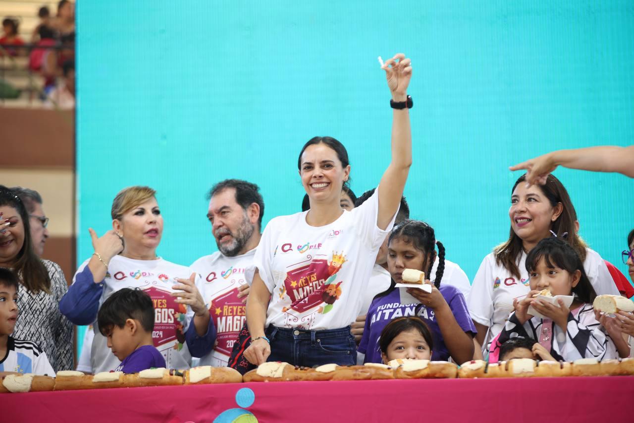 CANCÚN.- Autoridades del Ayuntamiento de Benito Juárez y del Gobierno del Estado, a través de los sistemas DIF Quintana Roo y DIF Benito Juárez, celebraron en Cancún a más de 6 mil 500 niñas y niños en el Gran Festival Reyes Magos 2024 “El mejor regalo es la paz”, que se celebró en la Plaza de Toros, con regalos, rosca de reyes, sorpresas, música y alegría para los consentidos del hogar.