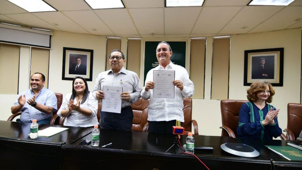 Firma de contrato entre Rector y el Sindicato de la UQROO