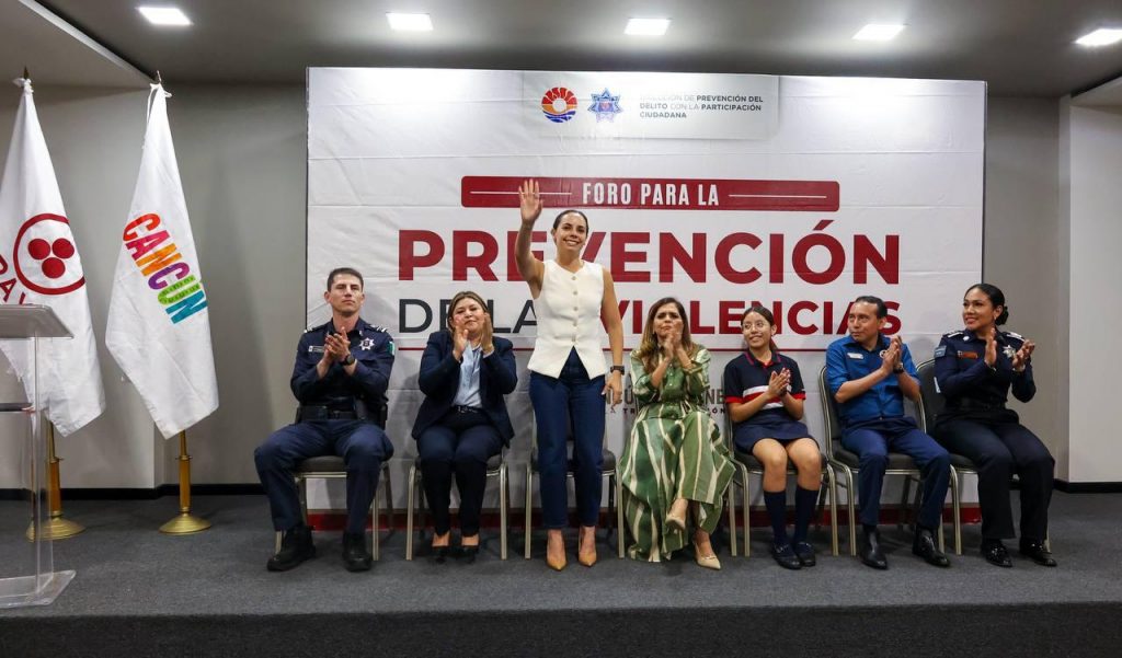 Cancún.- En fortalecimiento a la cultura de la prevención, aunado a la construcción de paz entre la juventud, la Presidenta Municipal, Ana Paty Peralta, participó en el “Foro para la Prevención de las Violencias”, dirigido a las y los alumnos de secundaria del Colegio Boston, organizado por la Secretaría Municipal de Seguridad Ciudadana y Tránsito y la Dirección de Prevención del Delito con la Participación Ciudadana.
