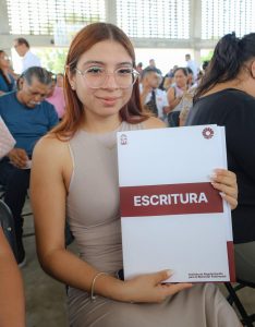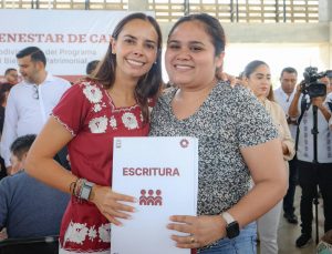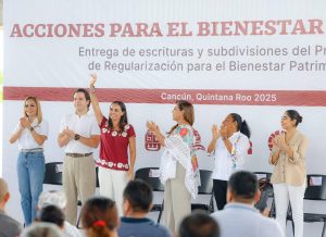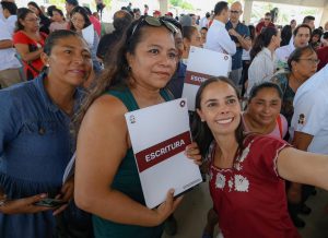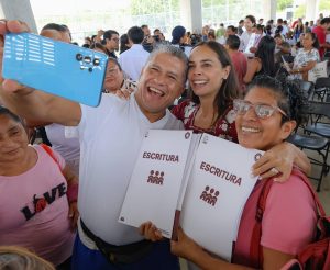 Cancún,- “Esto es palabra cumplida, estos son hechos con los que seguimos transformando Cancún”, dijo la Presidenta Municipal, Ana Paty Peralta, al entregar con la gobernadora, Mara Lezama, 303 escrituras y dos subdivisiones provenientes del Instituto de Regularización para el Bienestar Patrimonial (INBIPA), para dar certeza jurídica y justicia social a las y los cancunenses.