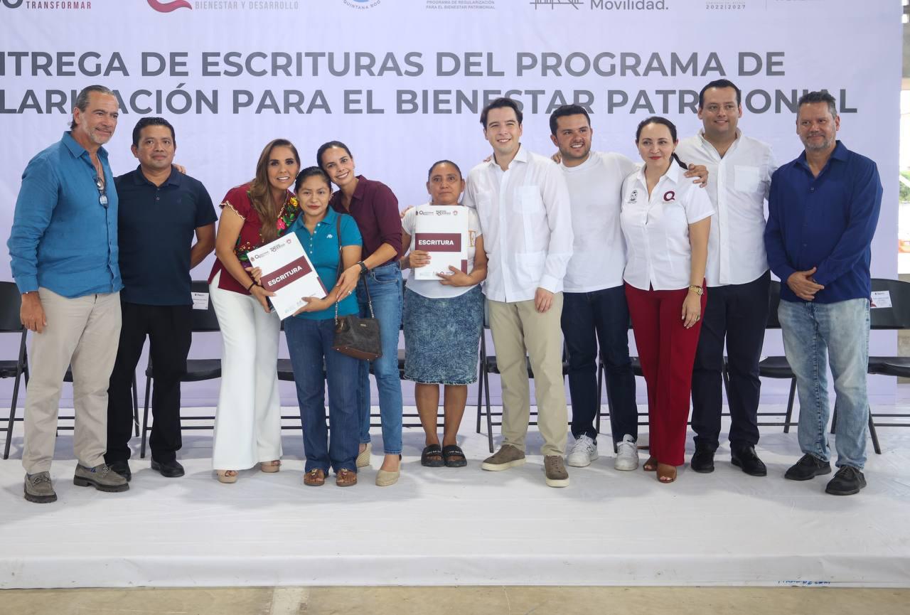 Cabe señalar, que al cierre del año las colonias México, Cedro, Sacbé, San Alfredo, Cuna Maya I, Las Norias, Tucanes, Tarzán y Diamante se encuentran en el último paso para consolidar la escrituración de sus predios, estando cerca de brindar la seguridad patrimonial de cientos de familias.