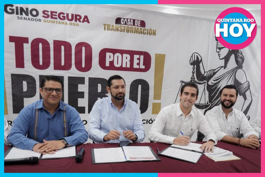 Cancún.- Un esfuerzo por impulsar la formación de futuros profesionistas y garantizar el acceso a la justicia para sectores vulnerables, el senador Gino Segura, encabezó este lunes la firma de un convenio de colaboración con barras y colegios de abogados, así como universidades de la zona norte del estado.