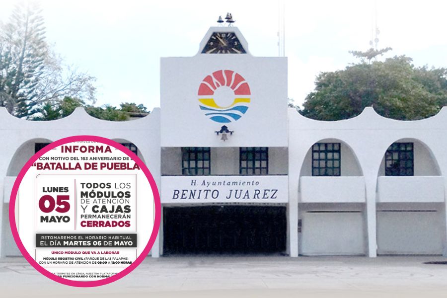 Cancún.- Con motivo del asueto por la celebración del 163 Aniversario de la Batalla de Puebla, este lunes 05 de mayo, la Tesorería Municipal y la Dirección de Ingresos del Ayuntamiento de Benito Juárez, informan a los contribuyentes que se mantendrán cerradas todas sus cajas y módulos, restableciendo las labores cotidianas el próximo martes 06 de mayo.