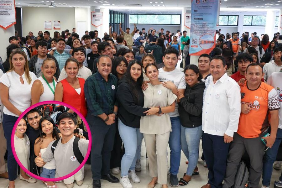 Al dirigirse en una amena interacción a los estudiantes de las licenciaturas de Terapia Física, Ingeniería Biomética, Ingeniería Financiera, Ingeniería en Biotecnología, Administración y Ingenierías en Tecnología de Información e Innovación Digital, durante la actividad en el marco del 15 aniversario de la casa de estudios, Ana Paty Peralta les hizo un llamado a ser ciudadanos comprometidos con Cancún y corresponsables para transformar este destino.
