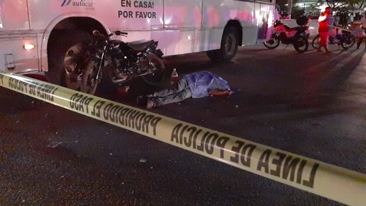 Cancún. Un motociclista perdió la vida de forma inmediata luego de estamparse contra un autobús de la empresa Autocar en la Región 105, en el cruce de avenidas José López Portillo y Lakín.
