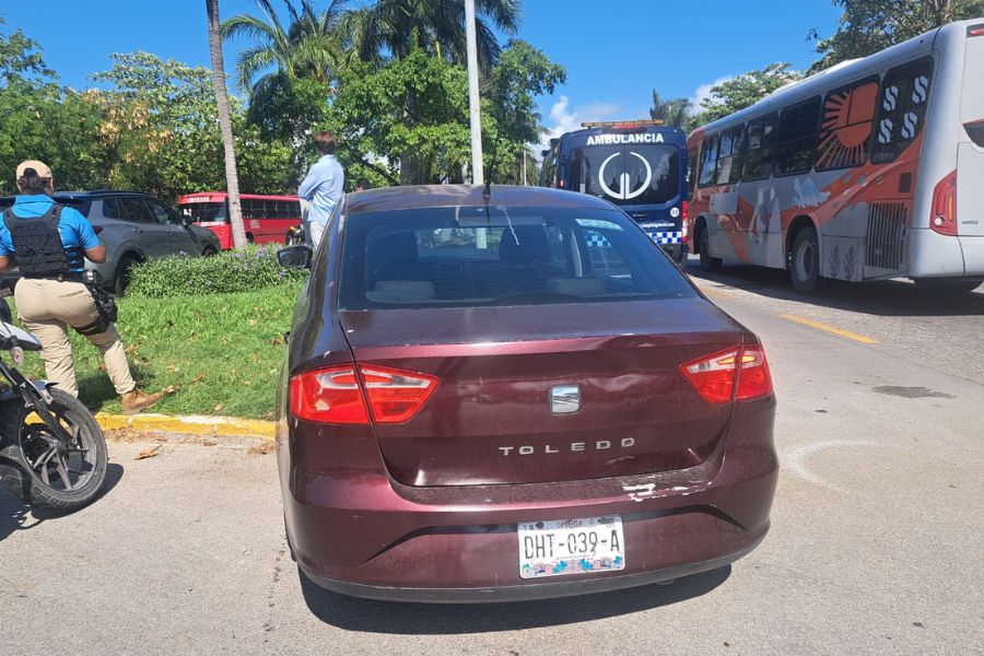 La conductora, a bordo de un automóvil Seat Toledo rojo con placas de Campeche, habría intentado realizar un cambio repentino de dirección en el kilómetro 7 del boulevard Kukulkán, justo frente a la entrada de Pok Ta Pok, sin respetar las normas de tránsito ni considerar la densa carga vehicular.